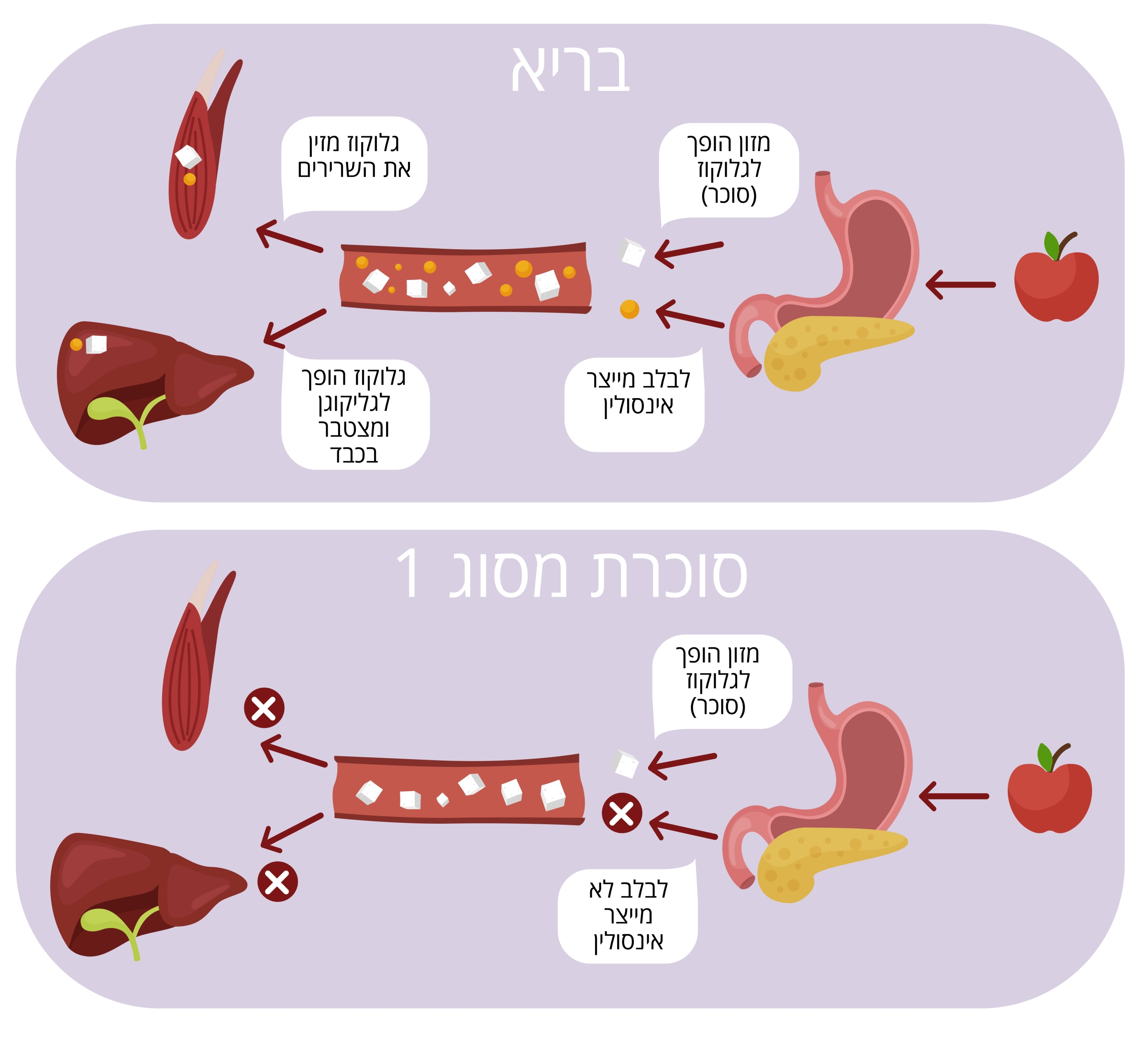 האינסולין מיוצר בלבלב, ואצל רוב האנשים הוא ממלא היטב את תפקידו ומווסת באופן שוטף את רמות הסוכר בדם ובתאים. אולם כשתפקוד תאי הלבלב שמייצרים אינסולין נפגע, ייצור האינסולין פוחת או חדל לגמרי, והתאים לא מכניסים פנימה את הסוכר. כתוצאה מכך הם לא מקבלים את האנרגיה הנחוצה להם והסוכר מצטבר במקום זה בדם. פגיעה כזאת עלולה להתרחש כשמסיבה לא ידועה מערכת החיסון של האדם תוקפת את תאי הלבלב שמייצרים אינסולין ומשמידה אותם. כשדבר כזה קורה, נאמר שהחולה סובלת מסוכרת מסוג 1, שבעבר נקראה סוכרת נעורים משום שבדרך כלל היא מתפרצת בגיל צעיר.