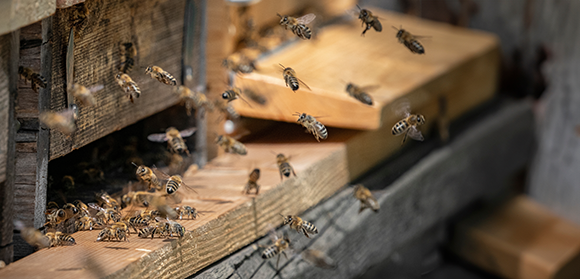 הטמפרטורה השנתית הממוצעת משפיעה מאוד על תפוצת מושבות דבורי הדבש בטבע. דבורי דבש בפתח הכוורת | Kuttelvaserova Stuchelova, Shutterstock