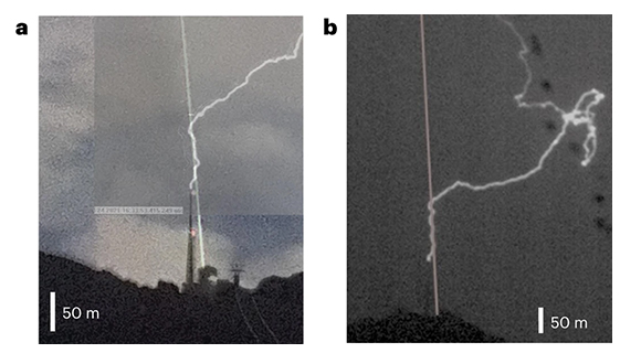 צילומי הברקים מ-24 ביולי 2021 כפי שצולמו על ידי שתי מצלמות צילום מהיר הממוקמות בשני אתרים שונים | מתוך מאמר המחקר