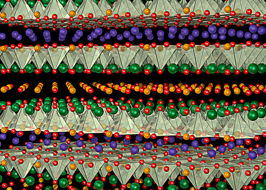 חומר המעביר אלקטרונים ואנרגיה ללא התנגדות. מודל של סריג מוליך-על המורכב מאיטריום, בריום, נחושת וחמצן | Paul Kent, National Center For Computational Sciences, Ornl / Science Photo Library