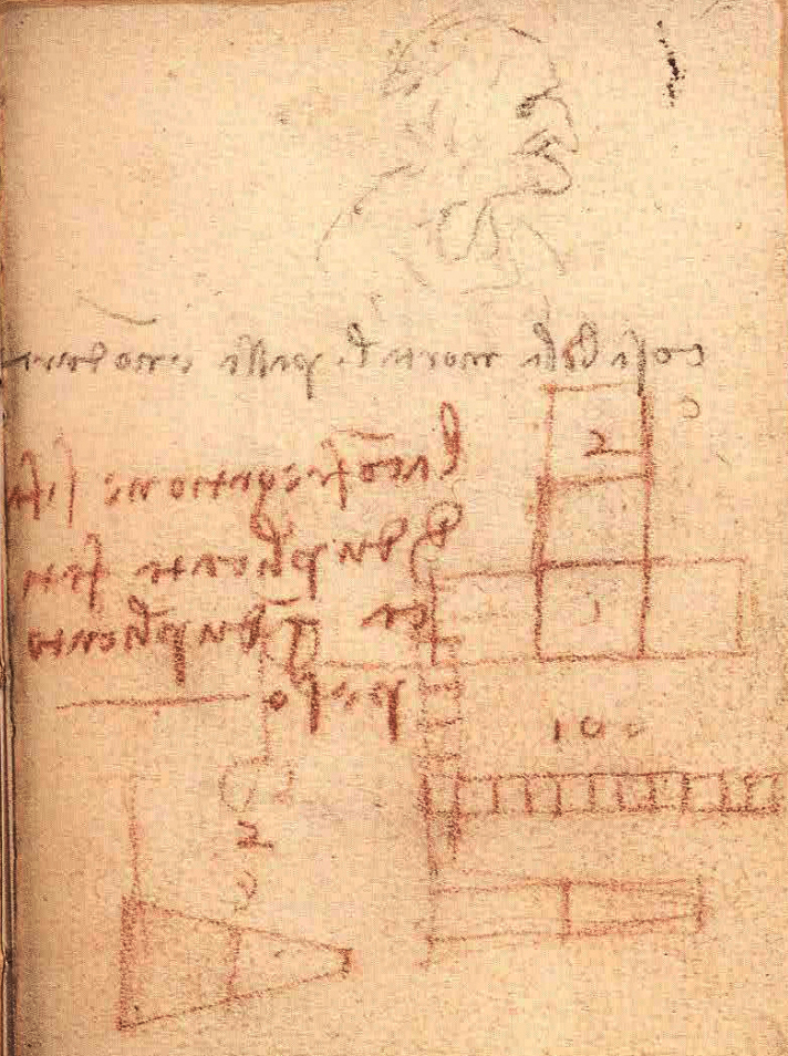 דה וינצ'י נהג להוסיף למחברות ישנות רישומים או הערות, לעתים בנושאים שאינם קשורים כלל לתוכן המקורי של העמוד, ככל הנראה כדי לחסוך מקום ונייר. ההרגל הזה הצליח להטעות את החוקרים: בחלקו העליון של העמוד מתנוסס רישום של ראש אישה זקנה, עם הכיתוב (באיטלקית): "יופיים של בני תמותה הוא בר חלוף, ואינו נשאר". את שאר הרישומים והטקסט בדף פטר בשעתו אוצֵר במוזיאון כ"הערות ורישומים לא-רלוונטיים בגיר אדום".