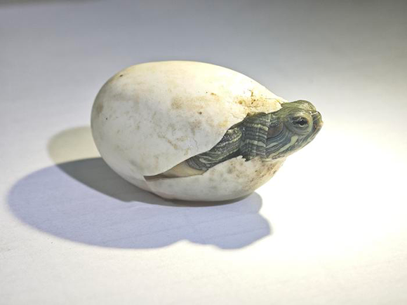 טמפרטורת ההדגרה קובעת את הזוויג. צבגון אדום-אוזן בוקע מביצה | FU Jiong