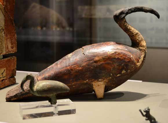 מיפוי דומה של מומיית הציפור ומדידת מאפייניה חשף שמדובר בבז, שמזכיר את המין בז מצוי (Falco tinnunculus). לבסוף בחנו החוקרים את מומיית הנחש. מבחינה חיצונית צורתה אינה מזכירה נחש כלל, אך בעזרת טכניקת הסריקה והמיפוי התברר שמדובר בנחש מפותל סביב עצמו, מהמין קוברה מצרית (Naja haje). המיפוי חשף גם נתק בין חוליות עמוד השדרה של הנחש, דבר שיכול לרמוז שהוא הומת בשיטת "תפיסת הזנב והצלפה", שהיא שיטה נפוצה להרג נחשים.