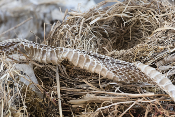חוקר עופות תהה ב-1889 אם ציפורים משתמשות בעורות נחשים בקיניהן כדי להפחיד נחשים. קן ציפור עם נשל נחש | צילום: spetenfia, Shutterstock