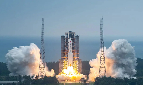 בדרך לפרוס רשת תקשורת נוספת בחלל? טיל לונג מרץ' 5B משגר את אחד הרכיבים של תחנת החלל הסינית, אוקטובר 2022 | צילום: Ourspace