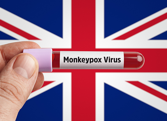 הענף החדש של אבעבועות הקוף הגיע לבריטניה. מבחנה עם הכיתוב "אבעבועות הקוף" על רקע הדגל הבריטי | Shutterstock, Morrowind
