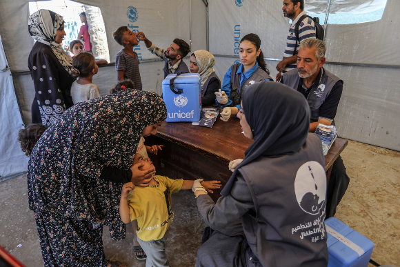 הצליח מעבר לתכנון. עמדת חיסון ילדים נגד פוליו בדיר אל בלח שברצועת עזה, 2 בספטמבר 2024 | צילום: Anas-Mohammed, Shutterstock