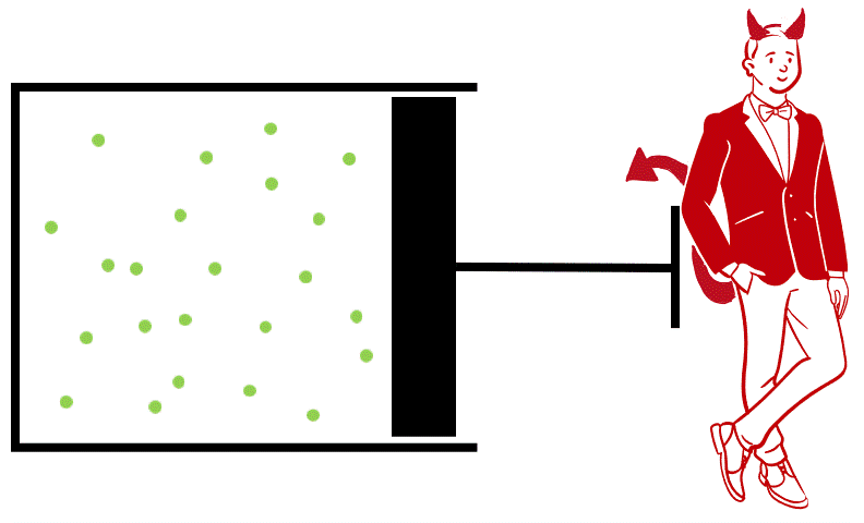אם נחכה מספיק זמן, נגלה שהשדון הצליח לדחוס את הגז לכל דרגה שנבקש, בלי להשקיע אנרגיה כלל. איך זה ייתכן?