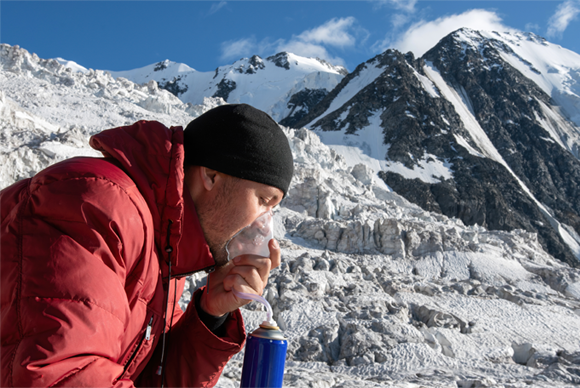 אנשים ללא אחת המוטציות נאלצים להיעזר בטכנולוגיה כדי להתמודד עם הגבהים. מטפס הרים נעזר במיכל חמצן | צילום: Kirill Skorobogatko, Shutterstock