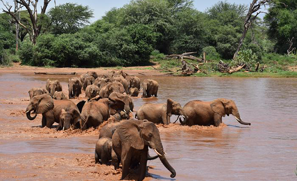 הרעימה מעבירה מספר מסרים בו זמנית. פילה מגיבה לקריאת הגור שלה בזמן חציית הנהר | מקור: George Wittemyer
