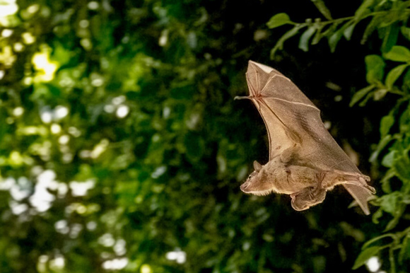 במהלך ההיריון, העטלפות השמיעו קולות בקצב איטי יותר ועפו לאט יותר ונמוך יותר. נקבת עטלף פירות מצוי נושאת גור | יובל ברקאי