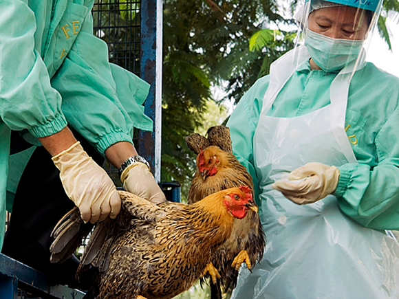 שפעת העופות מתפשטת עם ציפורים נודדות שמביאות אותה לכל מקום. תרנגולות נבדקות לנגיף שפעת העופות | Dung Vo Trung / Look At Sciences / Science Photo Library