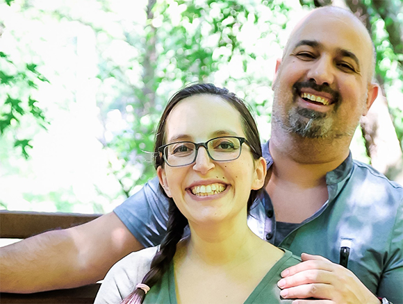 עם שתי משרות תובעניות לא נשאר הרבה זמן לישון. פרץ עם רעייתו, אֵבִּי גולדמן | צילום: NASA