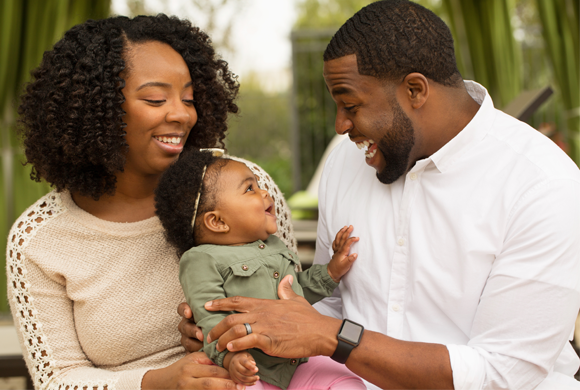 הורים מדברים לילדים צעירים ב"הורית", "בייבי טוק". זוג הורים והילדה שלהם | מקור: pixelheadphoto digitalskillet, Shutterstock