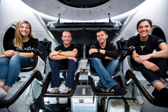 אסטרונאוטים פרטיים עם הכשרה ותוכניות של צוות מקצועי לכל דבר. צוות משימת Polaris Dawn בחללית דרגון. מימין: גיליס, אייזקמן, פוטיט ומנון | צילום: SpaceX