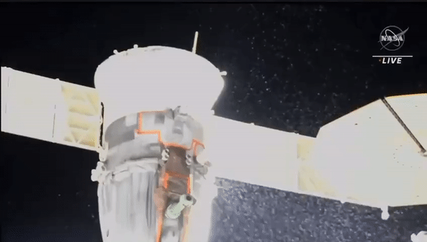 כרגע אין לחלק מאנשי הצוות מקום בטוח להימלט אליו במקרה של אסון בתחנת החלל. הדליפה מחללית סויוז העוגנת בתחנת החלל | צילום: NASA TV