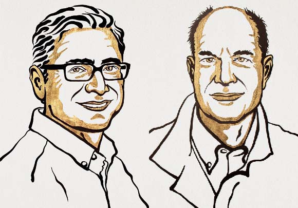 חישת טמפרטורה ומגע. דייויד ג'וליוס (מימין) וארדם פטפוטיאן | איור: אתר פרס נובל