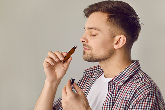 בניסוי קודם גילו שריח דמעות של נשים מפחית את רמת הטסטוסטרון בגברים. גבר מריח תכולת בקבוקון | Studio Romantic, Shutterstock