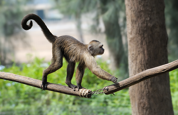המקטע Alu אותר בעותקי הגֵן TBXT אצל כל ההומינואידים, אך לא אצל אף אחד מהקופים בעלי הזנב. קוף עכביש עם זנב | vblinov, Shutterstock