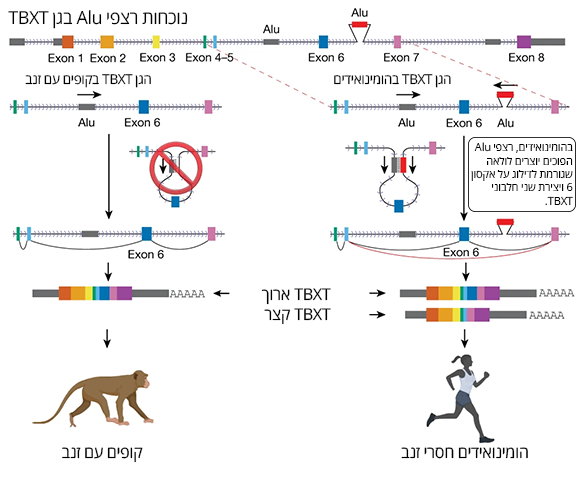 נוכחות רצפי Alu בגן TBXT והשפעתם על התפתחות זנב בהומינואידים (קופי אדם ואדם) ובקופים | מתוך מאמר המחקר