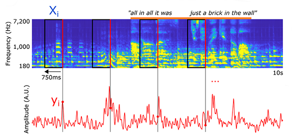החוקרים זיהו את האלקטרודות שרשמו פעילות עצבית בתגובה לצלילים. רובן נמצאו באונה הרקתית, שבה מתבצע עיבוד של קלט מהחושים, ובין היתר היא מכילה את קליפת השמיעה הראשונית, האחראית לעיבוד בסיסי של מידע המגיע מהאוזן. בתהליך, המכונה קידוד מוחי, החוקרים תיעדו כיצד קלט מן החוץ גרם לדפוס מסוים של פעילות עצבית. את הדפוס הזה אפשר להציג על מסך כתרשים של גלי מוח. אז יצרו החוקרים מודל שמקשר בין טווח הצלילים של השיר המושמע ובין הפעילות המוחית. כעת יכלו לעשות תהליך הפוך, המכונה פענוח – לנבא על סמך תרשים הפעילות המוחית מה האדם קלט בחושיו. כלומר, החוקרים ניסו לשחזר את הצלילים על סמך הפעילות המוחית שהוקלטה וכך להבין איך פועל המוח בעת ההאזנה.