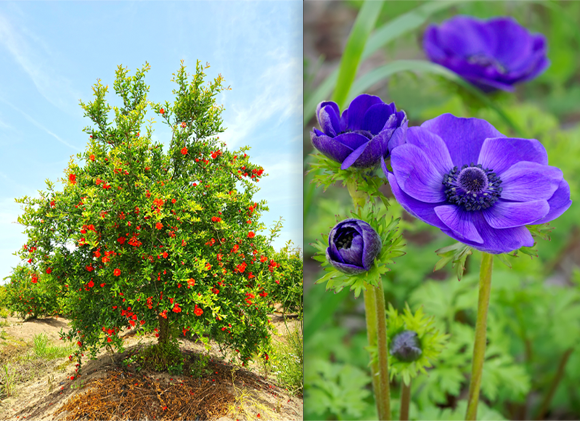 העלים והשורשים של צמחים רב-שנתיים מסייע להם להתגונן מפני מזיקים ולאגור אנרגיה. כלנית ועץ רימון | Shutterstock, zcebeci, Mary Terriberry