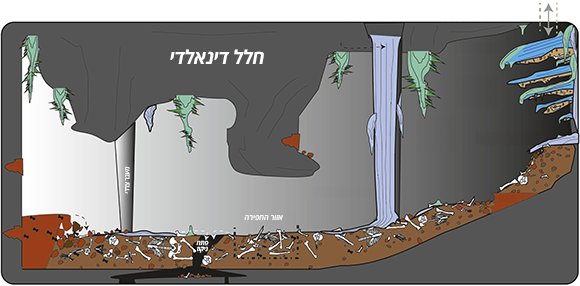 במעמקי מערכת מערות בשם "הכוכב העולה", בחללים שאפשר לגשת אליהם רק בזחילה דרך מעברים צרים ביותר, נמצאו יותר מ-1,500 עצמות. אילוסטרציה של אחד החללים שבו נמצאו העצמות | ויקיפדיה, Animalparty
