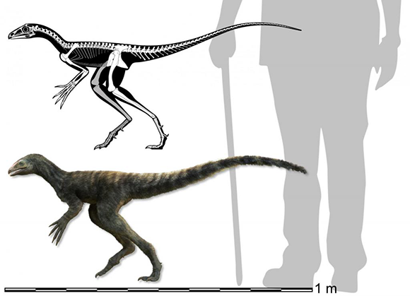 יצור קדום בשושלת הפטרוזאור. שחזור השלד והמראה של ונטורפטור גאסני, בהשוואה לאדם ממוצע | איור: Caio Fantini