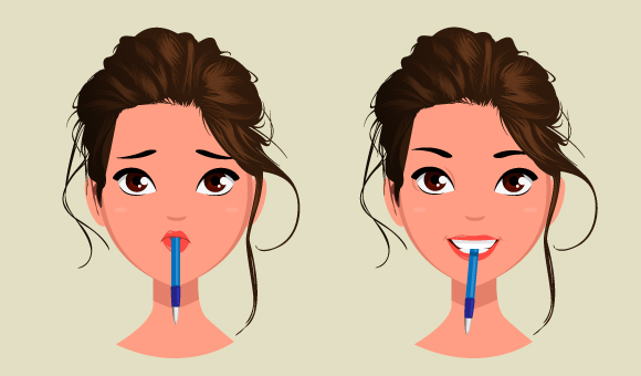 החזקת העט בין השיניים בצורה המדמה חיוך (ימין) ובין השפתיים בצורה המדמה זעף (שמאל) | איור: מריה גורוחובסקי מתוך Vector_KIF, Shutterstock