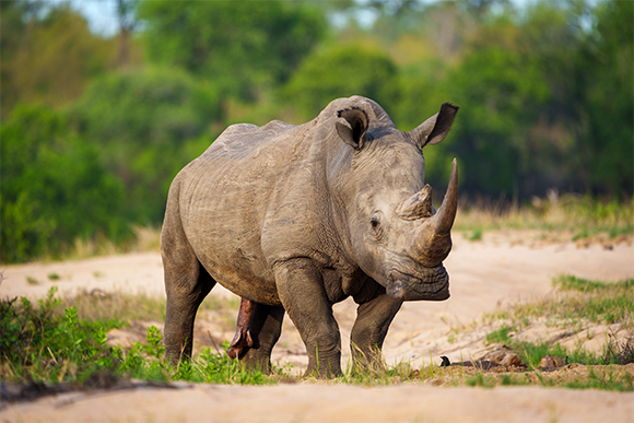 קרני הקרנפים אינן סתם קישוט: הם משתמשים בהן להגנה, לחפירת בורות ועוד. קרנף מציג לראווה את קרניו | Shutterstock, Roger de la Harpe