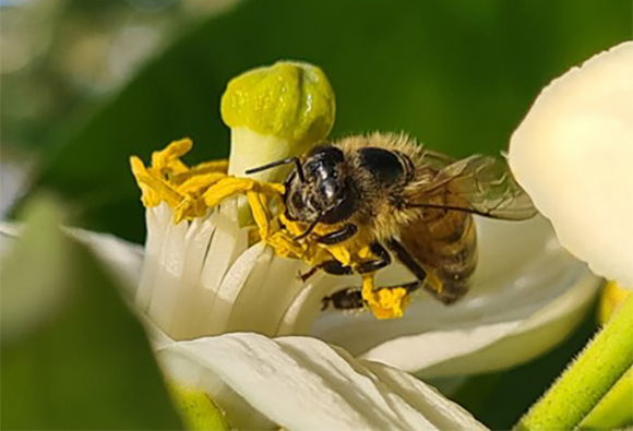 כשדבורת דבש מגלה אזור חדש ועשיר במזון היא לא שומרת את המידע לעצמה. דבורה על פרח | צילום: יאיר לופו. קישור לתמונות נוספות