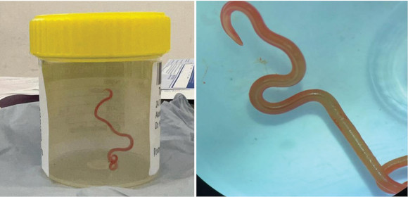 טפילה נפוצה של פיתוני שטיח, אבל לא אמורה להגיע למוח – בטח לא של אדם. התולעת שהוצאה ממוחה של אישה | מתוך המאמר, Hossain M. et al., Emerg Infect Dis. 2023