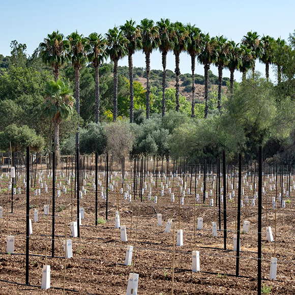 נטיעות הכרם המחקרי ובו זני באר וסיריקי בגן הלאומי עבדת, לאחר שנתגלו במערות עבדת | צילום: רשות הטבע והגנים