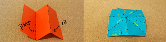הזוויות בין קפלים סמוכים שעוברים באותה נקודה באוריגמי שטוח | צילום ואיור: טל סוקולוב