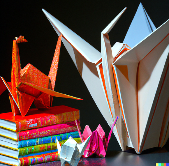 מימין: קיפול אוריגמי של עגור (הוראות); אייל לבן זנב, עיצוב: רוברט לאנג (תבנית הקפלים); אוריגמי תבניות חזרתיות | צילומים: Tiger Images, DenisProduction.com, Shutterstock