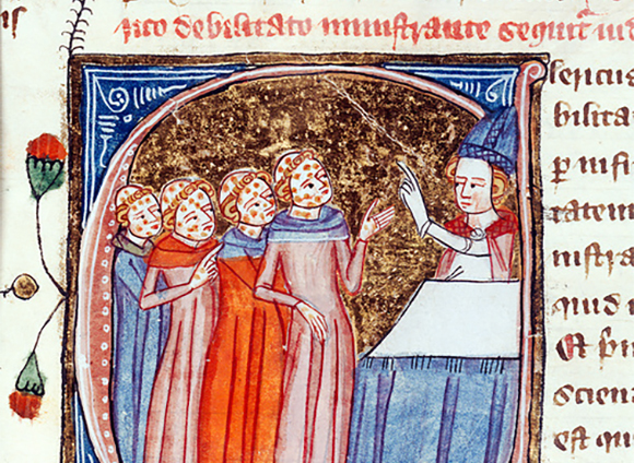 במשך השנים מגפות היו בין הגורמים שעיצבו את תכונותיהם של בני האדם באזורי התפוצה של מחוללי מחלות מסוימים. ציור מהמאה ה-14 המראה כומר מדבר אל חולי צרעת | British Library, Science Photo Library