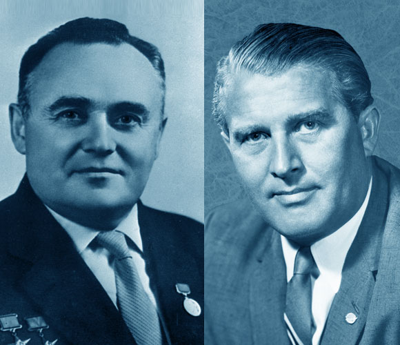 חובבי טילים שנקלעו למלחמות משני צדי המתרס. ורנר פון בראון (מימין) וסרגיי קורוליוב | צילומים: ויקיפדיה