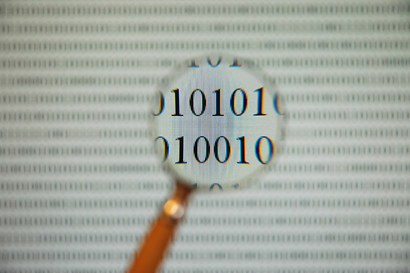 הביטים 0 ו-1 משמשים לתרגום מידע, קבצים, תמונות ושמע לשפה שאפשר לשמור על גבי חומרה. קוד בינארי נראה דרך זכוכית מגדלת | kilukilu, Shutterstock