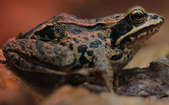 קופאת למוות בחורף, מפשירה לחיים באביב, בעזרת שתן בתאים. צפרדע העצים Rana sylvatica | צילום: Shutterstock