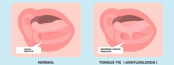 בעיות הנקה יכולות לנבוע מגורמים רבים, אך אם הגורם הוא לשון קשורה אפשר לפתור זאת באמצעות ניתוח. לשון לפני (משמאל) ואחרי ניתוח לקיצור ושחרור הפרנולום | איור: Designua, Shutterstock