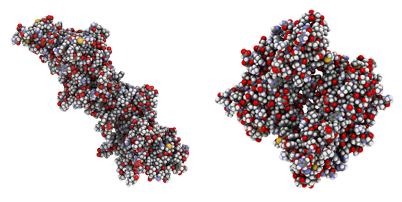 רפואה מותאמת אישית: התרופה טרסטוזומב נקשרת לחלבוני HER2 שעל פני תאי הסרטן וניתנת רק לחולות שהגידול שלהן מכיל חלבונים אלה. מבנה התרופה טרסטוזומב (הרצפטין) | מקור: Molekuul / Science Photo Library