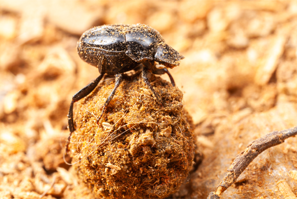 שומרים על הכדור: חיפושית זבלית על כדור הזבל שגולגלה בעמל רב כדי לספק בית גידול לצאצאים ותוספת מזון לאמם | צילום: Tacio Philip Sansonovski, Shutterstock