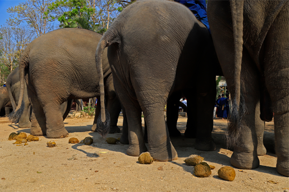 מערכת עיכול לא יעילה במיוחד. פילים בגן חיות וגלליהם | צילום: suriya phonlakorn, Shutterstock
