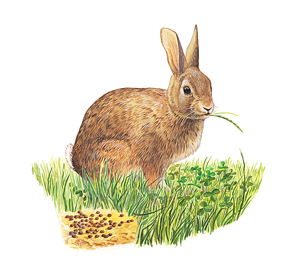 שני סוגים של קקי, אחד מיועד למאכל, ואחד הוא אכן פסולת. ארנבון והגללים שלו | איור: GARY HINCKS / SCIENCE PHOTO LIBRARY