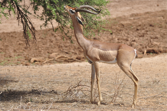 מערכת העיכול יכולה לסייע להדביר את החיפושית שמנצחת את השיטה. צבי ג'ירפי (גרנוק) אוכל מעץ שיטה | צילום: Marcel Brekelmans, Shutterstock
