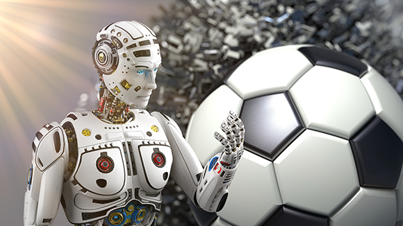 עם התקדמות הטכנולוגיה הצטרפה לנבחרת שחקנית חדשה – הבינה המלאכותית. אילוסטרציה של רובוט בכדורגל | Shutterstock, DRN Studio
