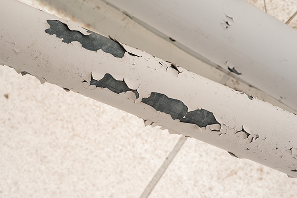 השימוש בעופרת היה נרחב בהרבה בעבר, לפני – ואפילו אחרי – שגילו עד כמה היא מסוכנת לגוף. צינור שמתקלף ממנו צבע המכיל עופרת | James Ebanks, Shutterstock
