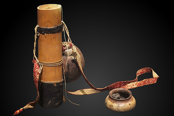 הרעלן חוסם את קולטני האצטילכולין בצומת העצב-שריר וגורם לשיתוק שרירים. אשפת חיצים טבולים בקורארה מן המאה ה-19 | Rama, Wikimedia
