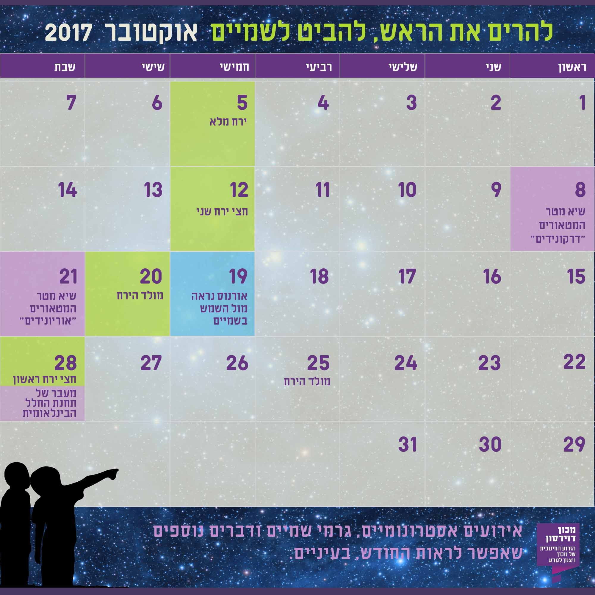הירח ישלים רבע ממסלולו סביב הארץ (רבע ראשון) וימצא בשיא גובהו בשעות הערב.