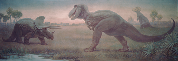 טי רקס זקוף בתמונה של צ’רלס נייט (Knight) מ-1942, שהופיעה בספרים רבים | Courtesy of: R. Testa. (c) Field Museum of Natural History. CC BY-NC 4.0. https://mm.fieldmuseum.org/bd850db6-9190-4628-be33-b7a500dd7338 (accessed on 05 Jan 2023)